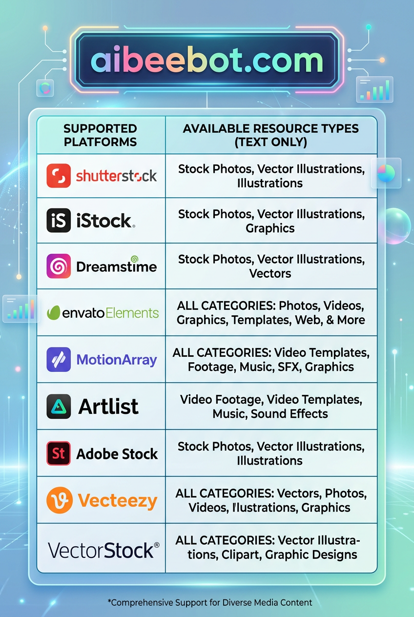 In my experience, it’s the most reliable “Shutterstock downloader,” “iStock downloader,” and “Adobe Stock downloader” right now—and it supports more than those three. It also works with Dreamstime, VectorStock, MotionArray, Artlist, Envato Elements, and Vecteezy.